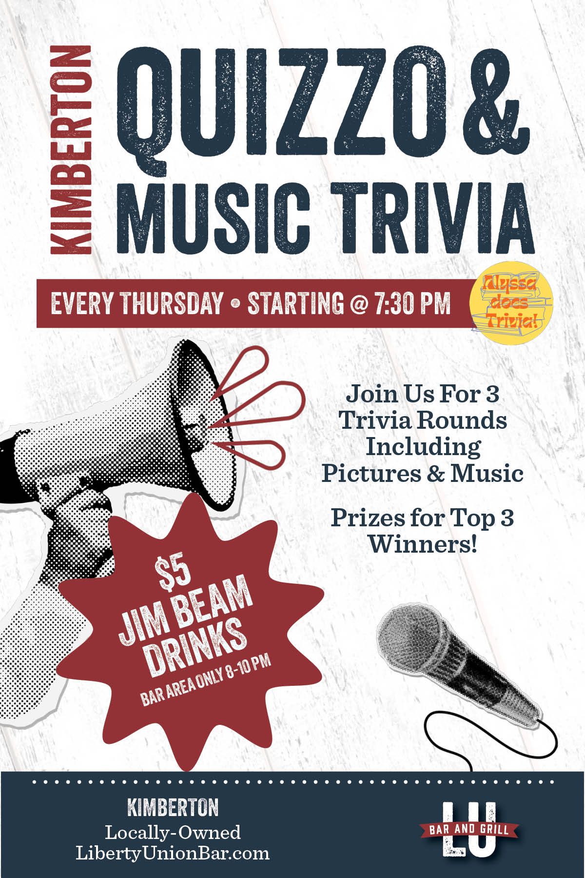 Fun on the Weekend can be found at Liberty Union in Kimberton. Test your Music Knowledge and win prizes!