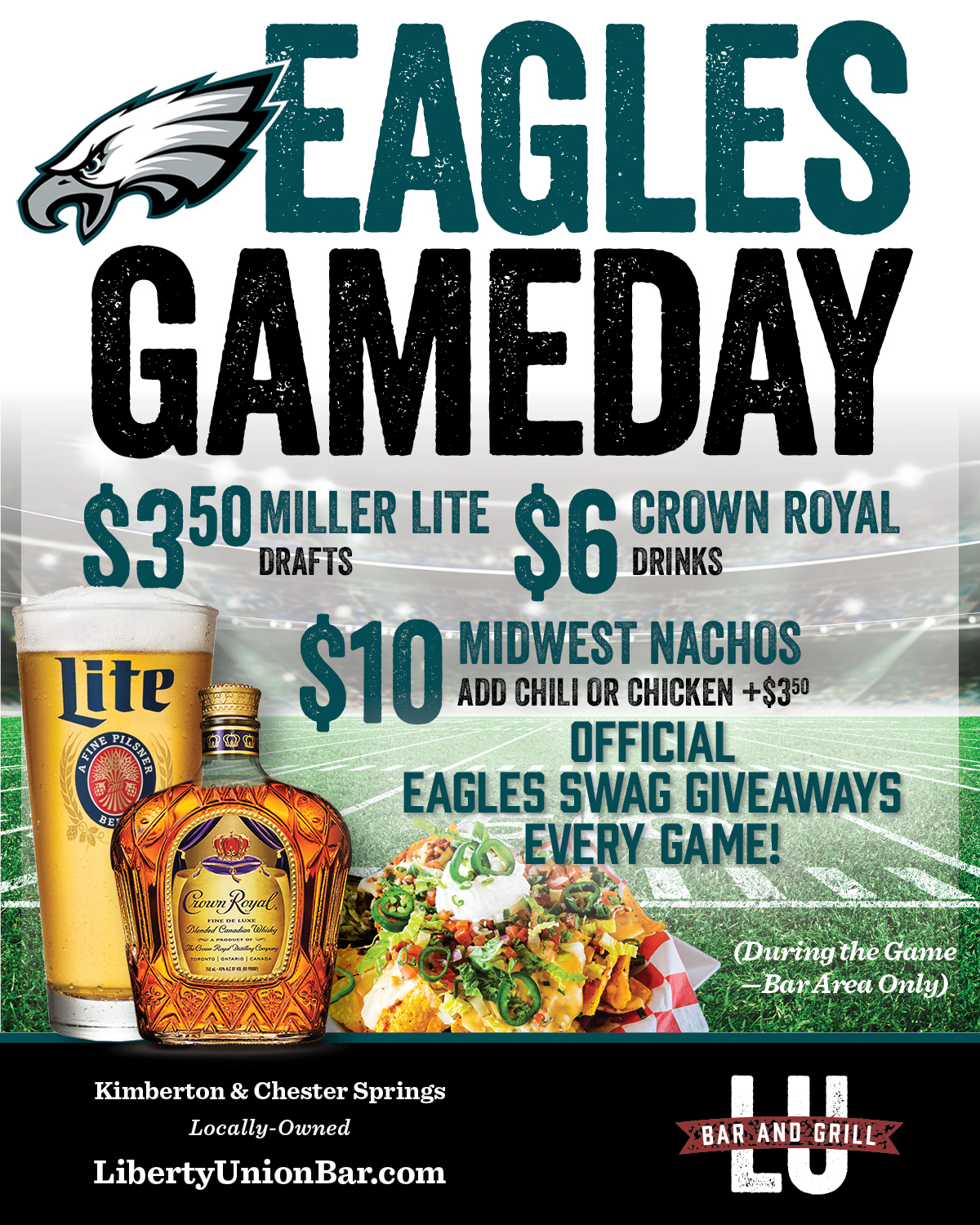 When the Eagles Play, You Win! Food and Drink specials in the bar area along with Official Logo Eagles Giveaways.