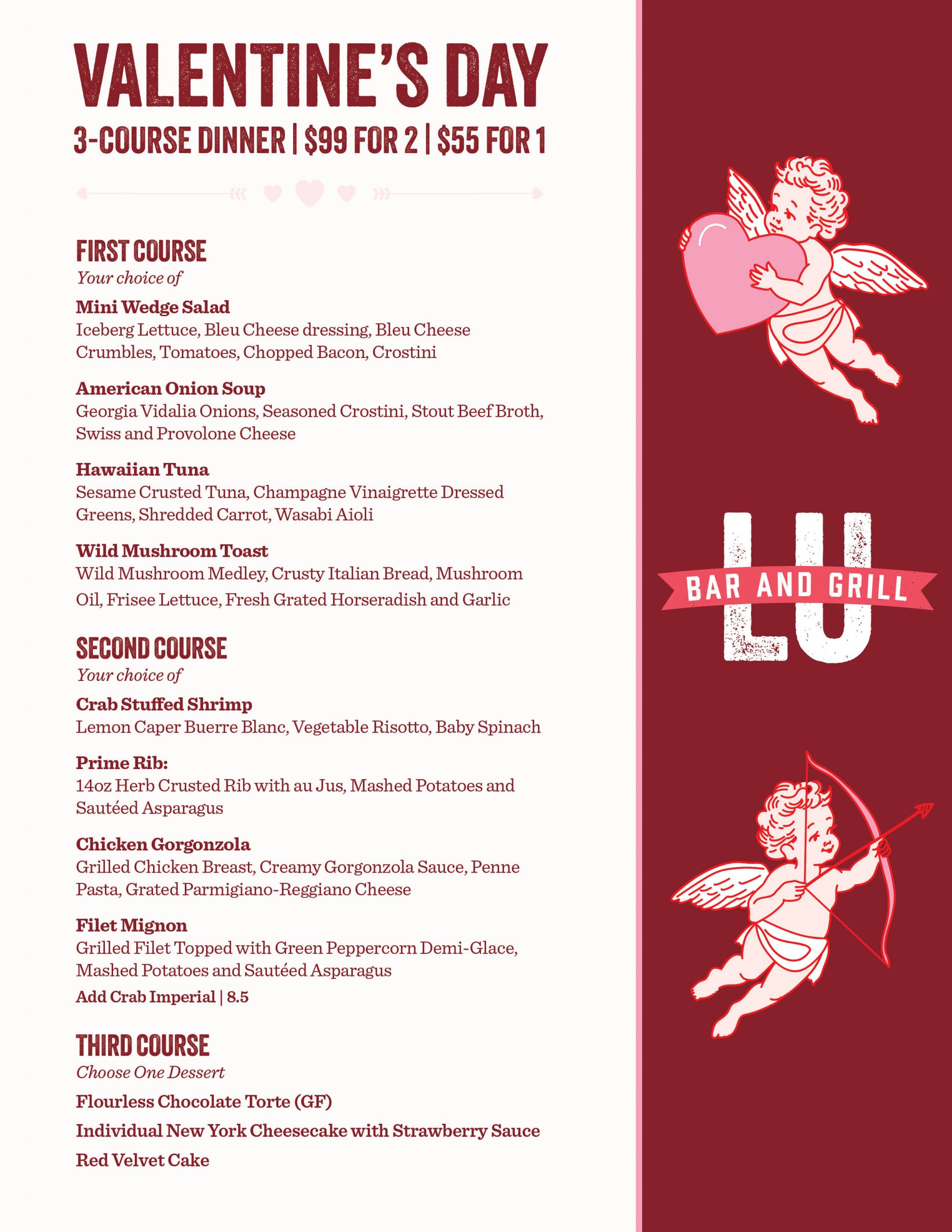 Bring your sweetheart out for a fabulous 3 course dinner. Only $99 per couple or $55 for one. Reserve your Table today 484-927-4244